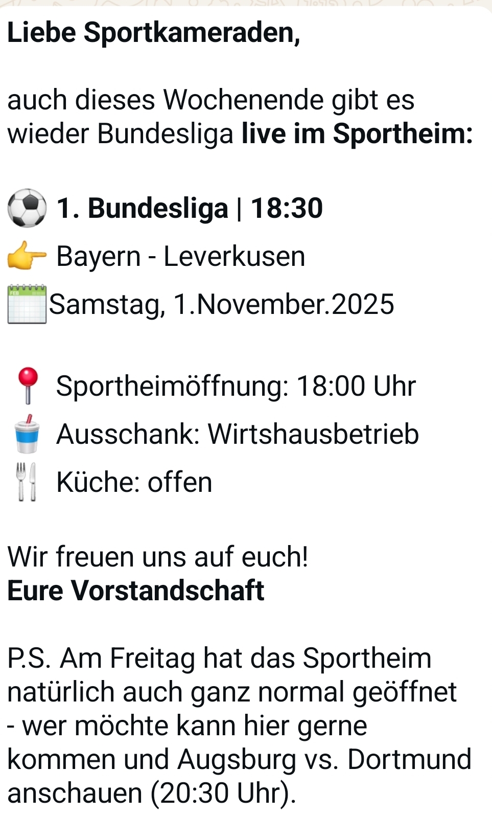 Es freut uns, dass zu diesem Spitzenspiel wieder viele Fußballbegeisterte in unser Sportheim...