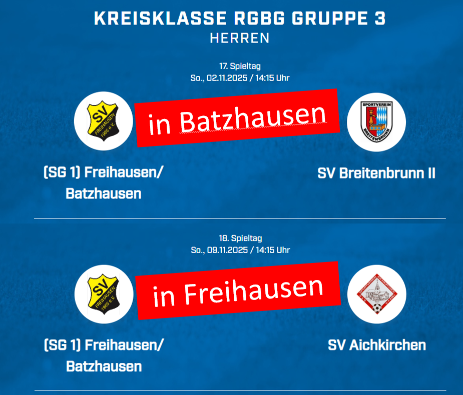 ACHTUNG! Spielortverlegungen am 02. und 09.11.2025