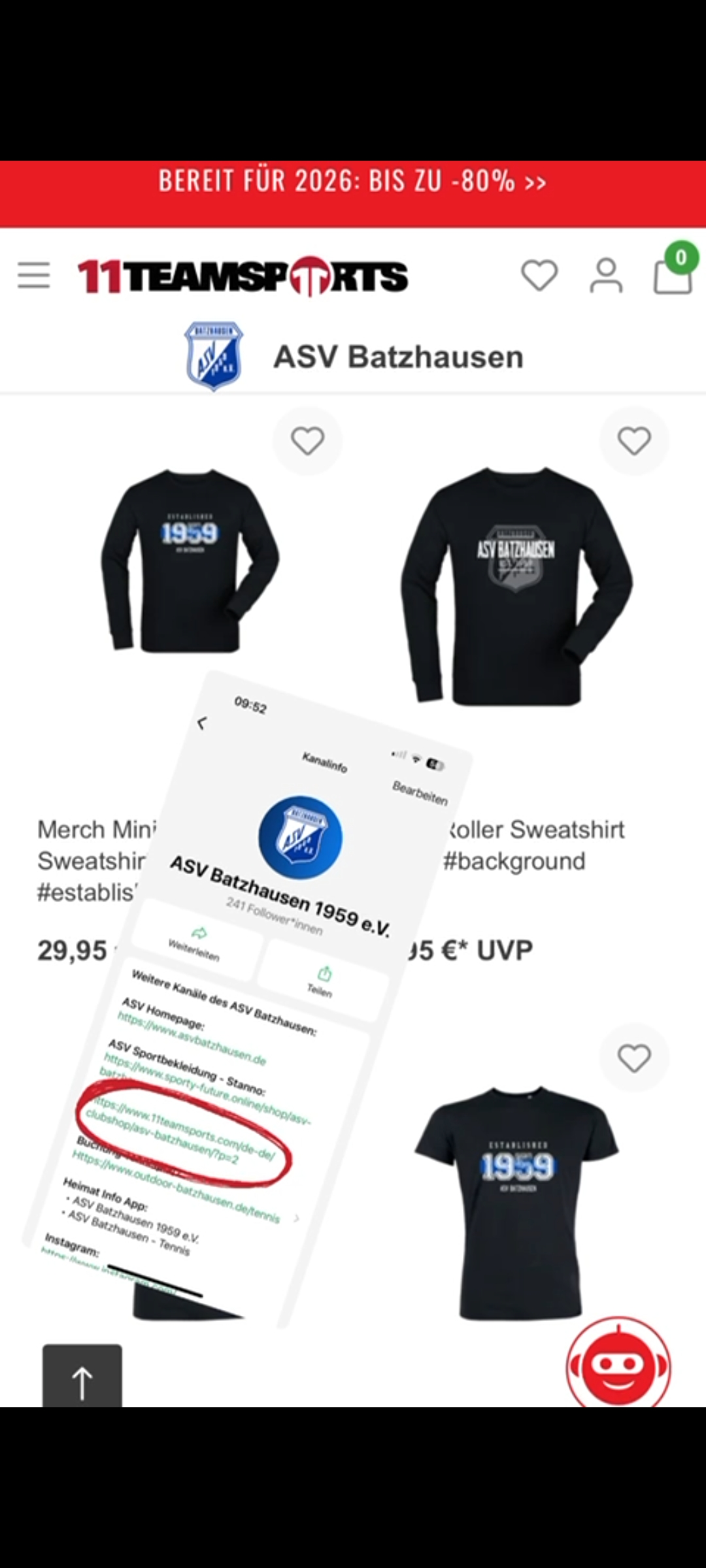 Nach langer Zeit ist unser Merchandise-Shop bei *11teamsports* wieder online 🎉