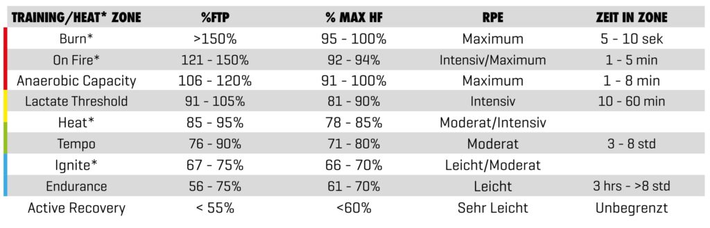 Weiß (Ignite): Aktive Erholung 50-60% der maximalen Herzfrequenz, sehr leicht.